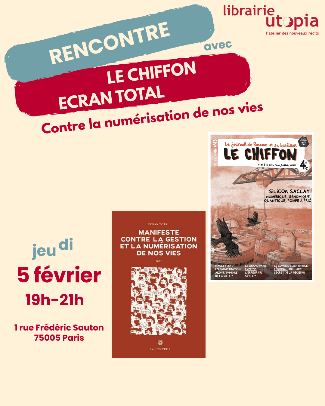 Jeudi 5 février à 19h : Contre la numérisation de nos vies