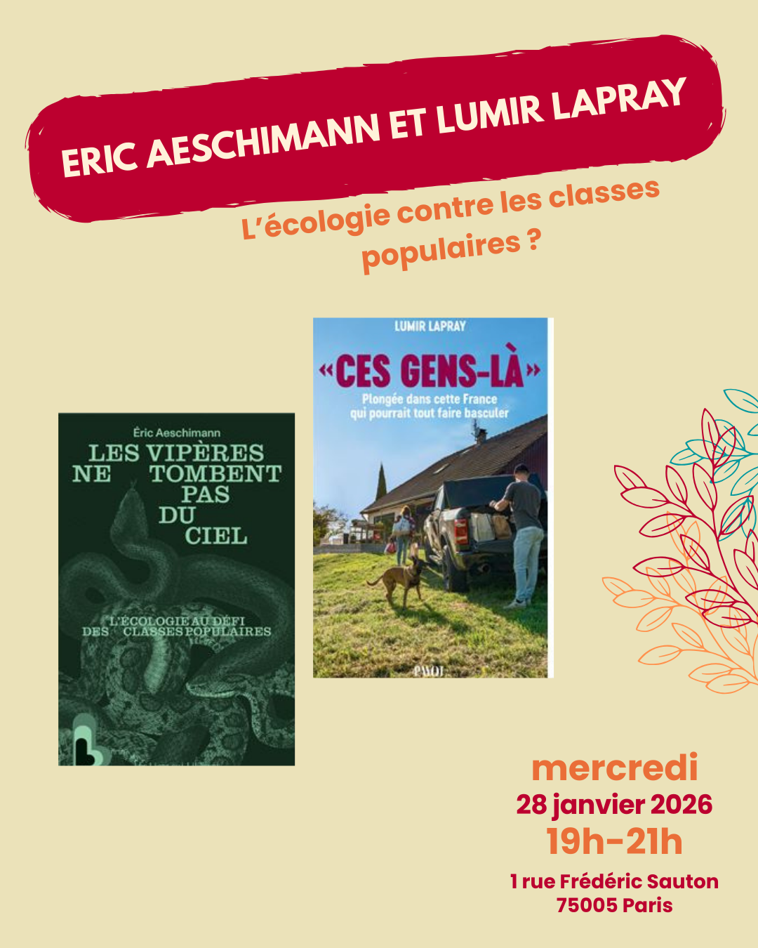 Le mercredi 28 janvier à 19h rencontre et débat avec Lumir Lapray et Eric Aeschimann sur l’écologie et les classes populaires.