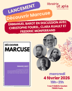 Le mercredi 4 février à 19h : lancement du livre Découvrir Marcuse, avec Emmanuel Barot, en discussion avec Christophe Fourel, Clara Ruault et Frédéric Monferrand.