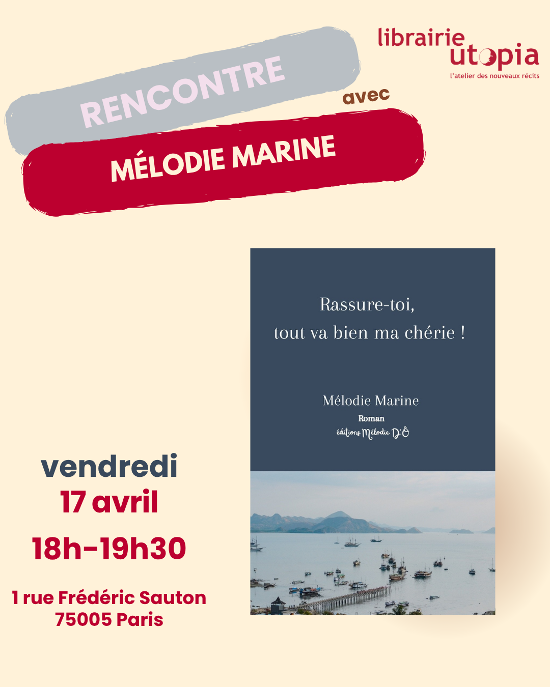 Le Vendredi 17 Avril de 18h à 19h30, Mélodie Marine viendra dédicacer son livre « Rassure-toi, tout vas bien ma chérie » à la Librairie Utopia.
