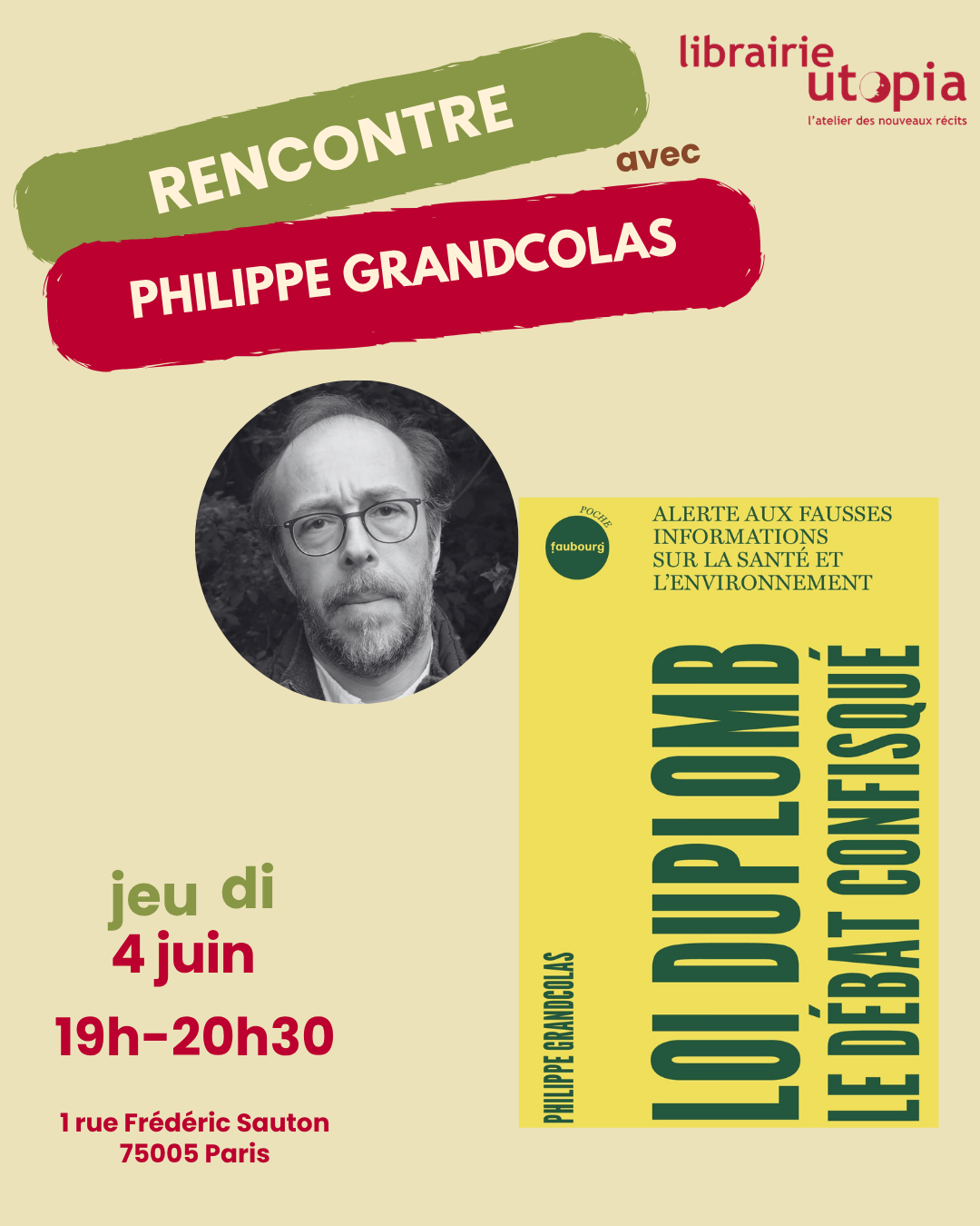 Mis en avantLibrairie Utopia 1 rue Frédéric Sauton, Paris, Île-de-France, FranceLe jeudi 4 juin à 19h nous aurons le plaisir d’accueillir Philippe Grandcolas pour son dernier livre « Loi Diplomb...